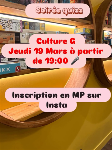 - Quiz Culture générale Jeudi 19/03 à 19h30 : Inscription sur instagram !